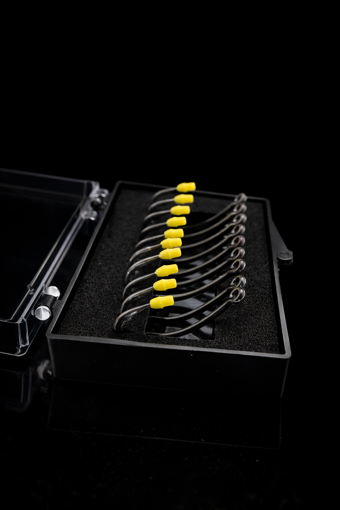 Zachte rubberen beschermdopjes voor de haakpunt, uitgevoerd in fel Geel zodat je ze niet over het hoofd ziet 😉