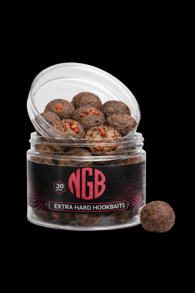 X-tra Hard Hookbaits van NGB zijn extreem harde boilies, ontworpen als effectief haakaas. Met speciale ingrediënten blijven ze tot wel 48 uur keihard, wat ze ideaal maakt voor wateren met veel kreeft of dwergmeerval. Ook kunnen ze worden gebruikt als hookbait zonder randen of als halve boilie aan de hair. Deze hookbaits delen bijna 90% van hun ingrediënten met de boilies uit onze Range.