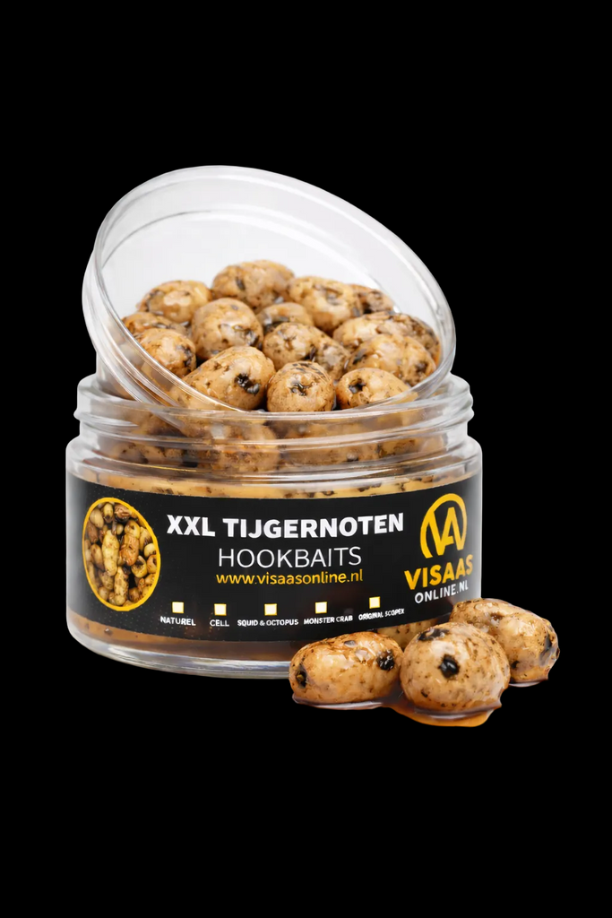 Tiger nuts no longer need an introduction to contemporary carp fishing. These nuts are very sweet in themselves, and slimy. The tiger nuts are by far the most used particles in Europe, Feed cuttings are maintained more cheaply with them and the carp loves these sweets. The tiger nut has the right nutritional values and will also do very well for instant fishing. Fish know this bait and recognize it as natural food. Visaasonline has a large circulation in tiger nuts and can therefore keep the stock fresh.